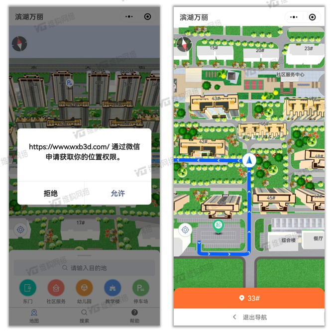 維小幫3D定位導航系統為小區人員提供精細化導航服務,并為來訪人員提供詳細小區介紹和周邊信息服務,有效減少了80%人員迷路問題,助力項目方實現以小區居民為服務核心,利用智慧技術提升小區品質。為居民提供安全、高效、便捷的智慧化服務。