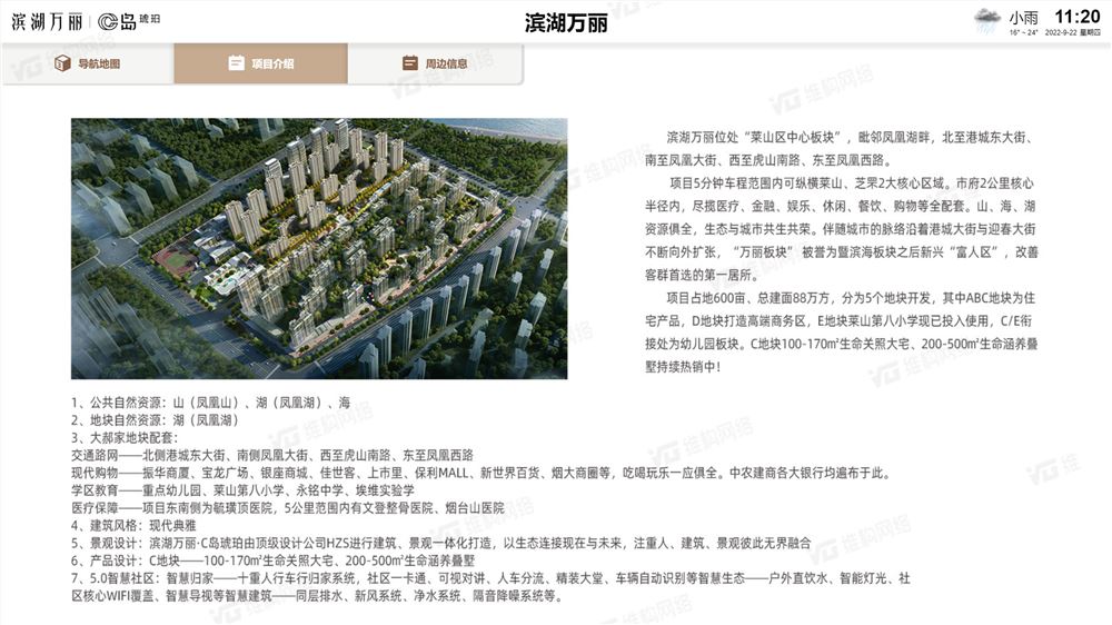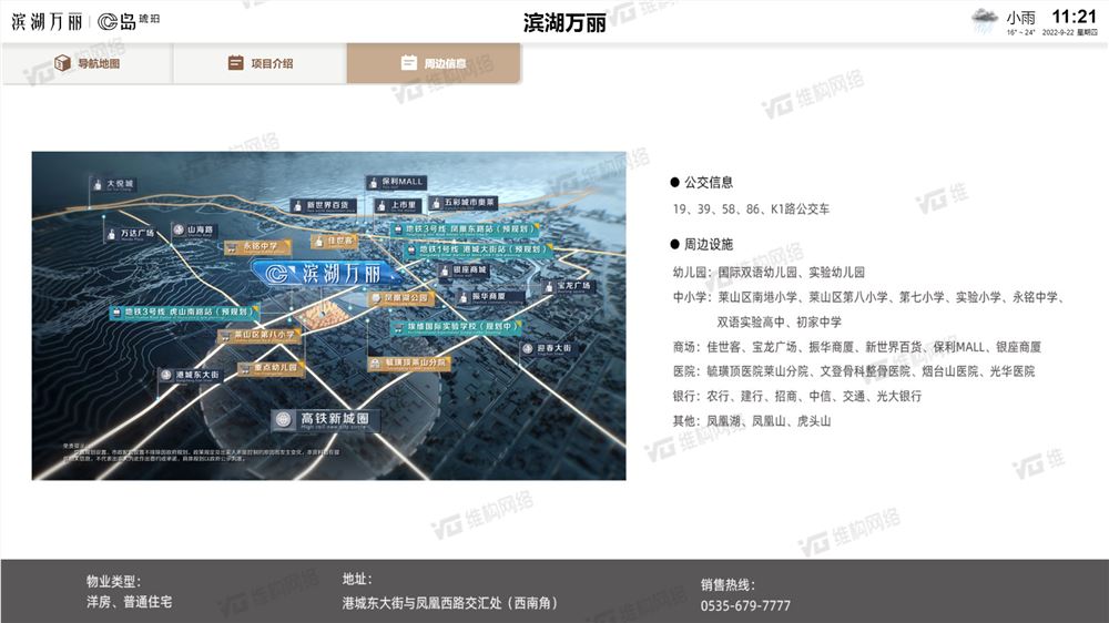 為小區居民呈現交通信息和周邊設施介紹,并配以可視化地圖,為居民提供人性化、便捷化的同時,也展現了小區的區位優勢。