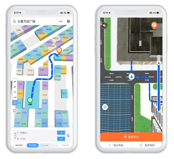 多模態導航:提供 2D 電子地圖與 AR 實景雙模式導航,支持跨樓層路徑自動切換,語音實時播報 “左轉 10 米”“上 3 號電梯” 等指引。