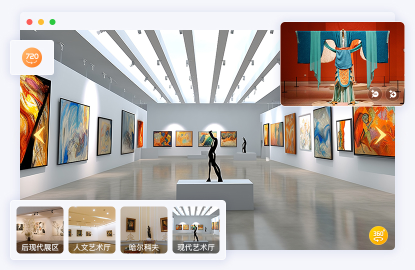 展館導航路徑以720°VR全景進行展示,輔助用戶識別周圍環境,快速達到目的地。