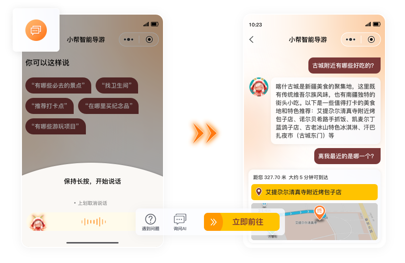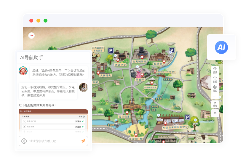 提供問答對話式導游服務,AI引擎智能識別游客的問題并給出智能回答。支持語音/文字輸入,快速獲取推薦結果,讓游覽更省心。