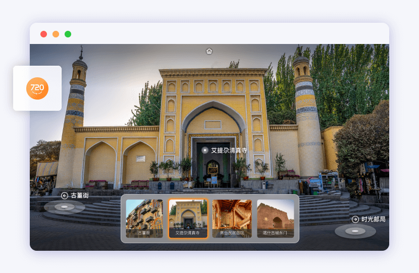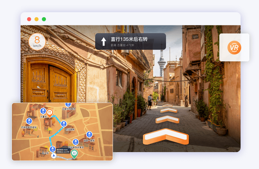 景區導航路徑以720°VR全景進行展示,輔助用戶識別周圍環境,快速達到目的地。